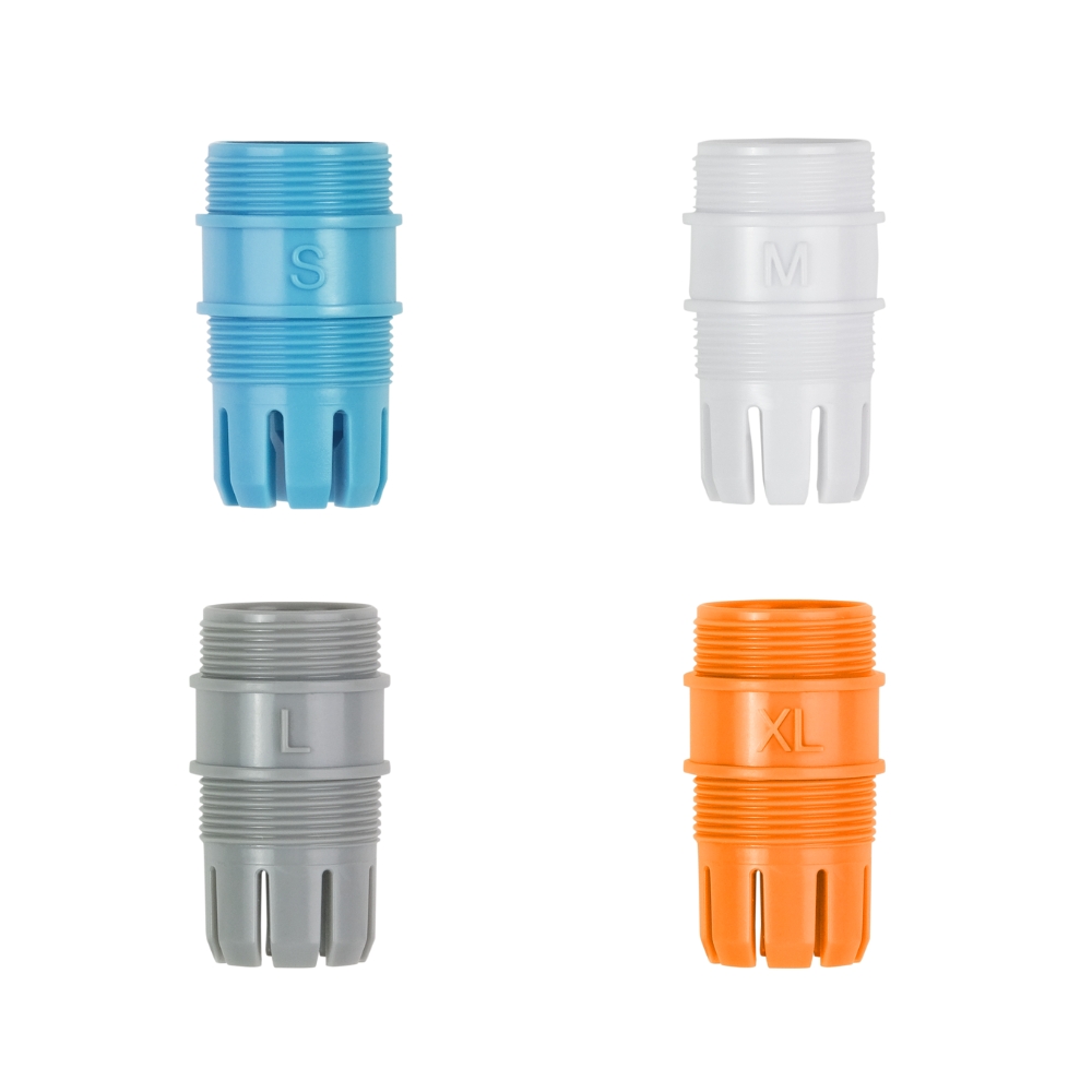 – 3 adaptateurs pour différentes tailles de stylo : petit (bleu), moyen (blanc), grand (gris) et très grand (orange)