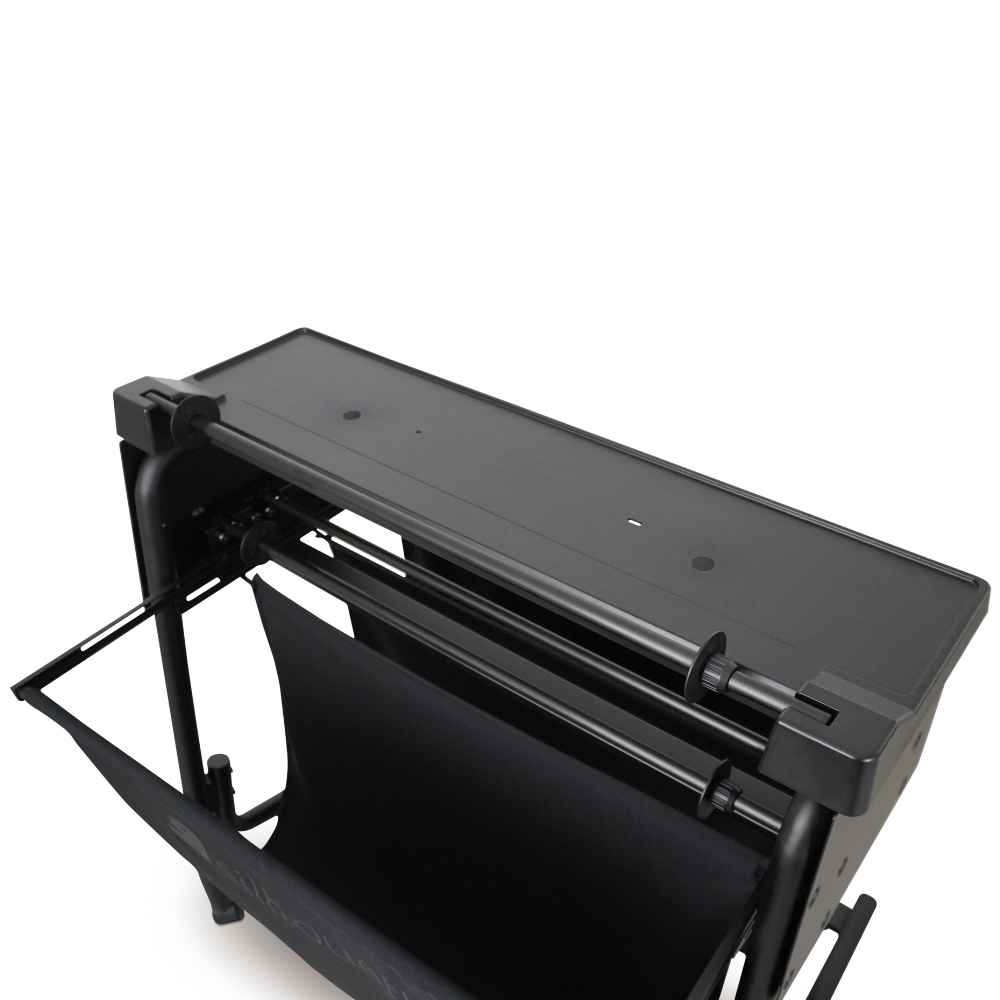Le Support d’accueil de Silhouette est un support compatible avec le Cameo Pro MK-II. Le support offre une plateforme stable et polyvalente pour votre machine tout en proposant une solution optimale pour la gestion des matériaux longs. Avec le panier antistatique, les matériaux sont récupérés, afin d’éviter qu’ils ne traînent au sol et de limiter l’électricité statique. De plus, les roulettes intégrées facilitent le déplacement du support dans la pièce.