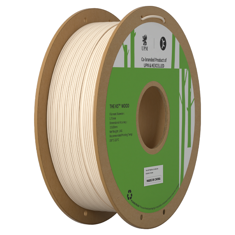 Le filament K5 WOOD de Kexcelled est composé de PLA mélangé à de la poudre de bois réelle. Il donne à vos impressions un aspect et une texture bois authentiques, idéal pour les objets décoratifs et artistiques. Le K5 WOOD de Kexcelled et co-marqué avec UPM, est un filament innovant qui combine la beauté naturelle du bois avec la précision et la vitesse de l’impression 3D. Le filament est idéal pour la création de produits ayant une finition de bois.