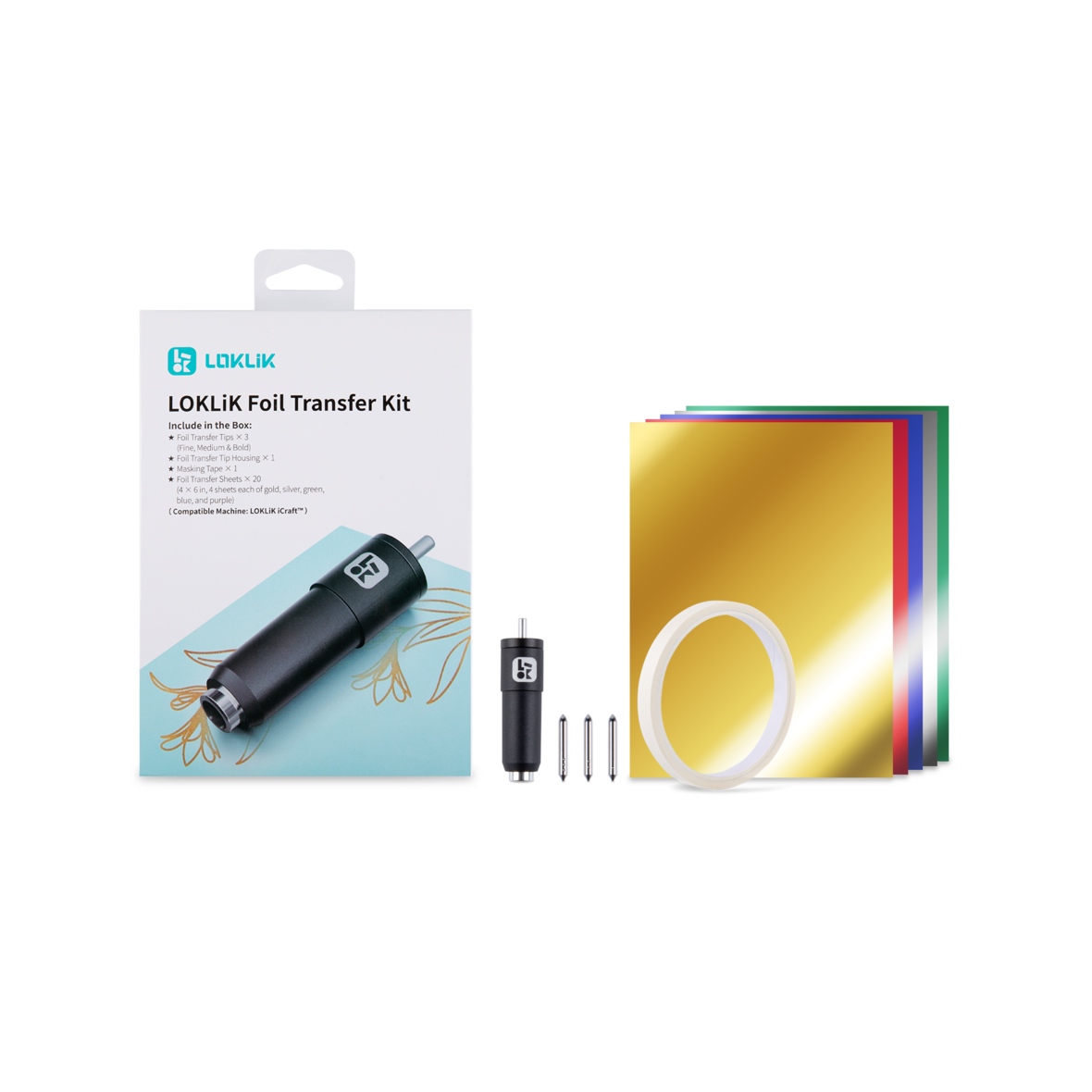 Le LOKLiK iCraft™ Foil Transfer Kit vous permet d'ajouter une touche métallique brillante à vos créations. Ce kit de transfert de feuille dorée est compatible avec les machines de découpe LOKLiK iCraft et convient parfaitement pour la décoration de cartes, invitations, et projets créatifs.