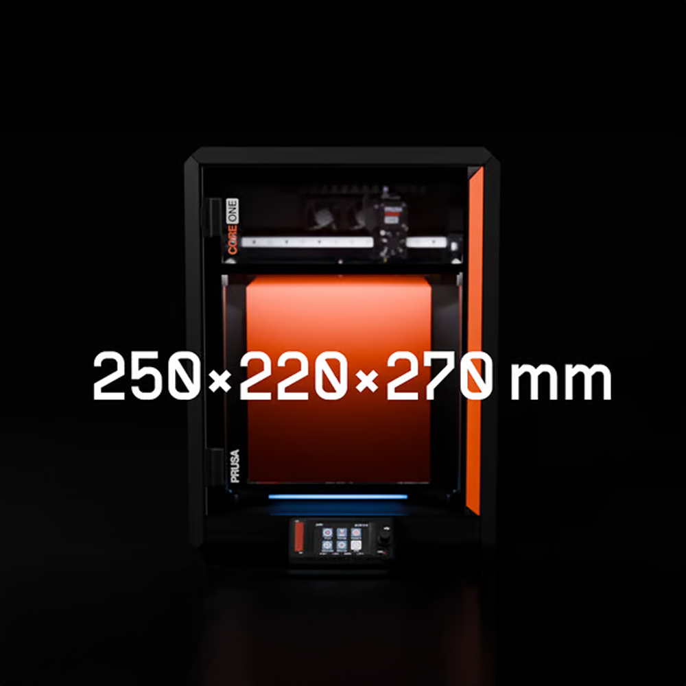 La Core One de Prusa est une imprimante 3D compacte et moderne de très haute gamme qui est polyvalente et fiable. Avec une grande chambre d’impression complètement fermée, un design Core XY et une philosophie de « conçu pour durer », la Core One est une imprimante 3D qui possède une grande surface d’impression, qui peut imprimer une large gamme de filaments, même exigeantes sans compromettre sa rapidité et qualité et est aussi facile à désassembler et réparer, ce qui fait la machine idéal pour les initiés et les vétérans de l’impression 3D.